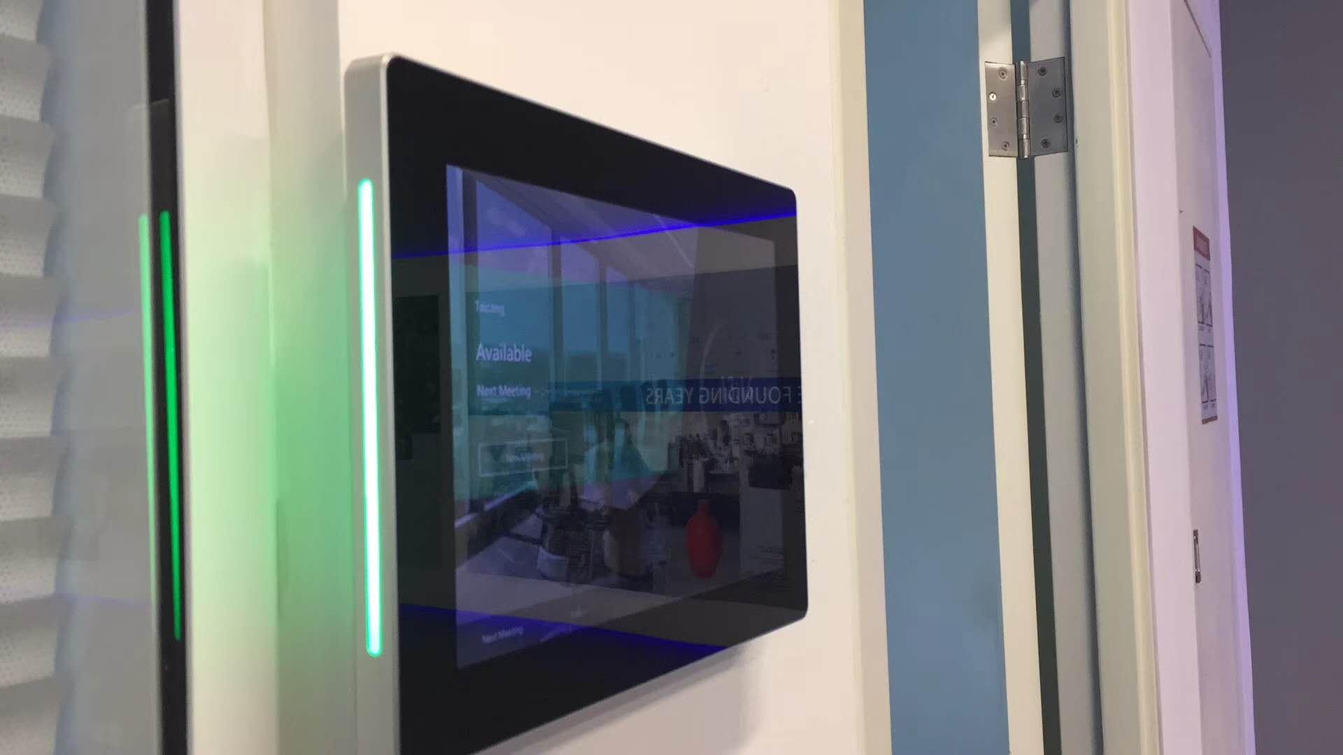 4、会议显示终端设备:会议室门口安装会议显示终端,用来显示会议预约信息及一些音视频、logo及图片信息;